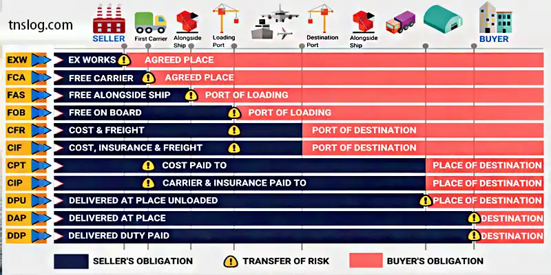 - Seller’s obligations: Seller delivers to a named place at destination (DDP also covers import duties). Risk transfers when goods are placed at the named location.